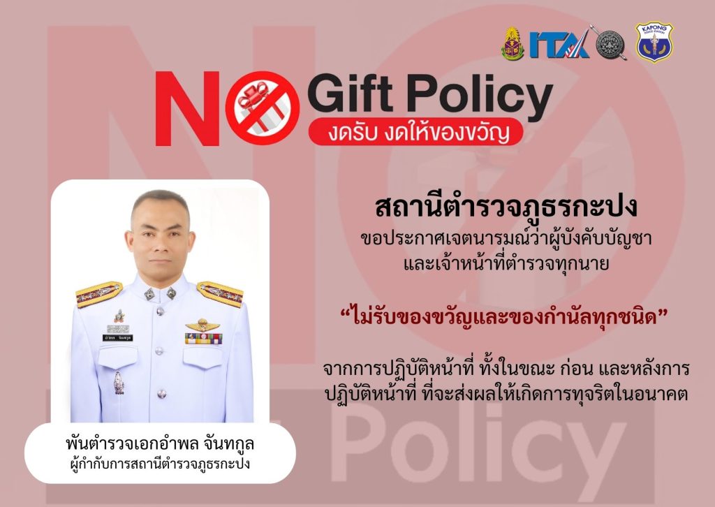 (No Gift Policy) จากการปฏิบัติหน้าที่ พ.ศ.2568